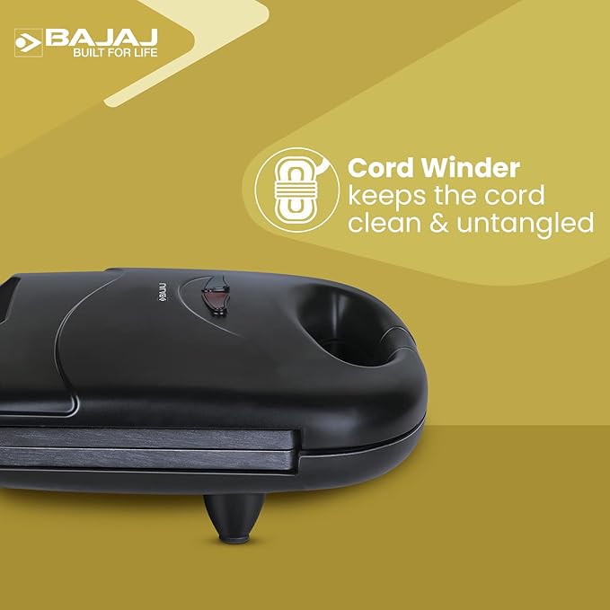 Bajaj SWX 4 Deluxe 800-Watt 2-Slice Grill Sandwich Maker | Non-Stick Coated Plates for Easy-to-Clean | Upright Compact Storage | Buckle Clips Lock | 2-Yr Warranty by Bajaj | Black Sandwich Toaster