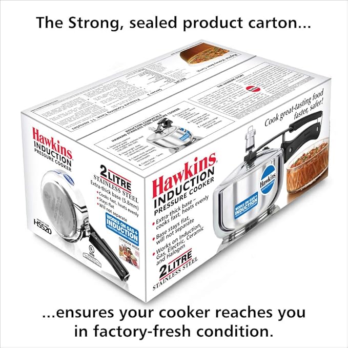 Hawkins Stainless Steel Induction Compatible Inner Lid Pressure Cooker, 2 Litre, Silver (HSS20)