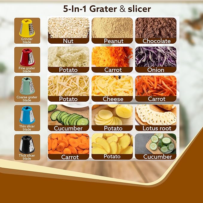 AGARO Marvel Electric Grater & Slice Machine,250W Professional Electric Cheese Grater,Automatic Electric Grater for for Fruits, Cheeses & Vegetables, 5 Free Attachments, Grey & Red