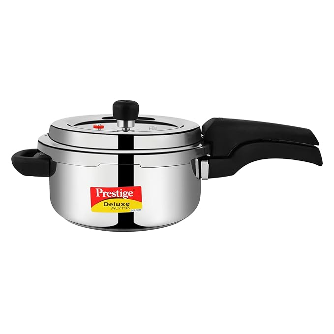 Prestige 3L Svachh Deluxe Alpha stainless steel Pressure Cooker|Outer lid|3-4 personsl|Deep lid for spillage control|Gas & induction compatible|Controlled GasketRelease System|Silver|10 years warranty