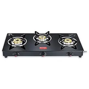MILTON Premium 3 Burner Black Manual Ignition LPG Glass Top Gas Stove, (ISI Certified)