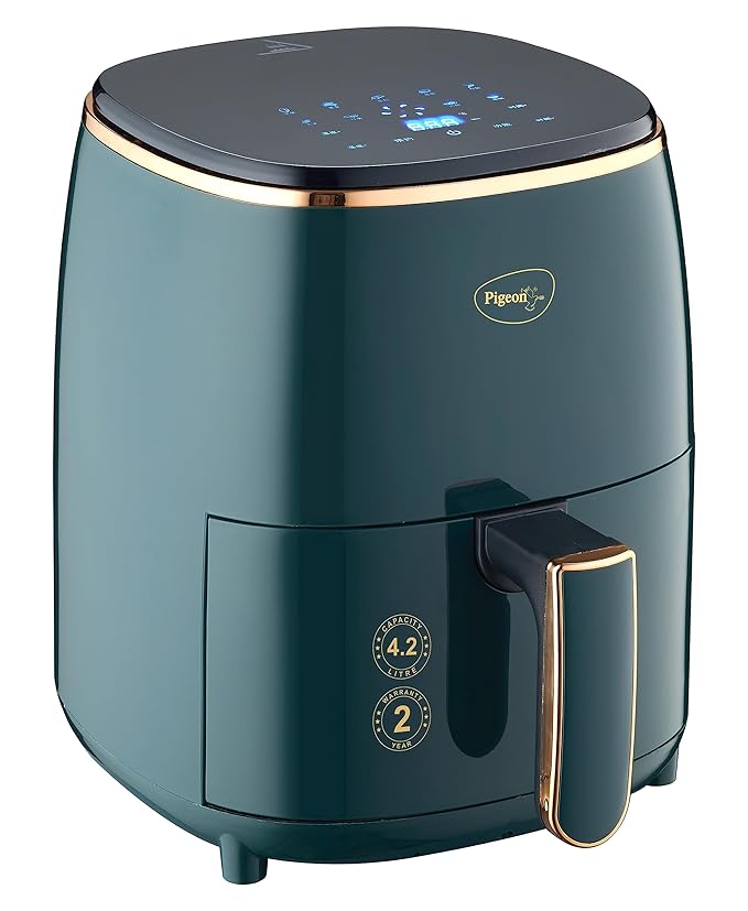 Pigeon Healthifry Digital Air Fryer, 360? High Speed Air Circulation Technology 1200 W with Non-Stick 4.2 L Basket - Green